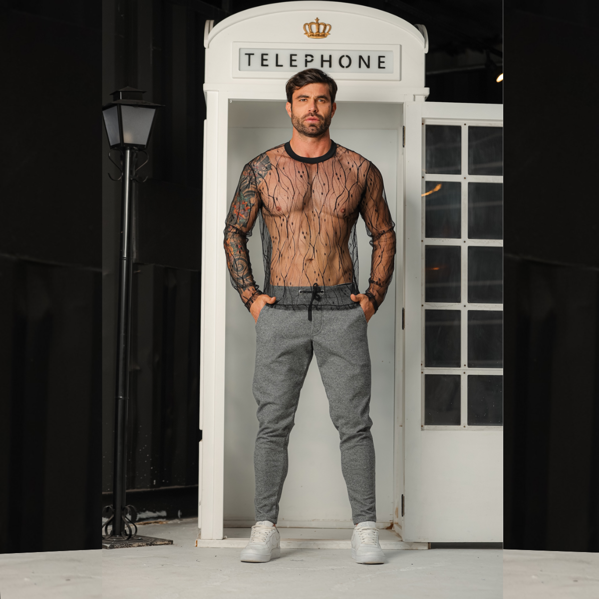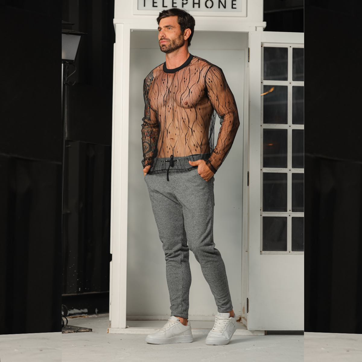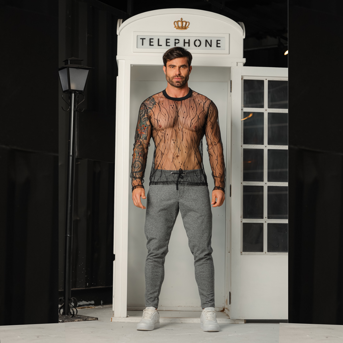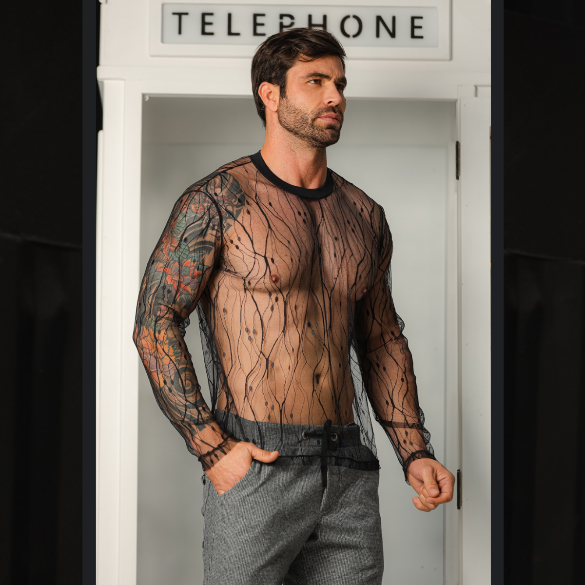 Arte Noir: Men’s Printed Mesh Long Sleeve AJ044